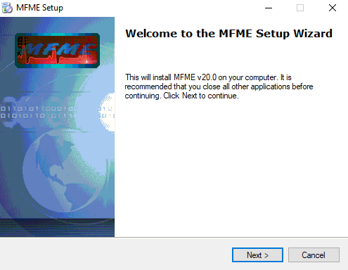 Open daarna MFMEv20.exe en het volgende scherm verschijnt: