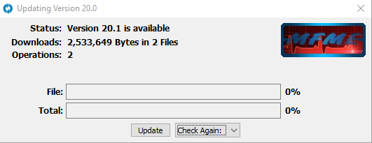 Er zal nu worden gekeken of er een update is naar de laatste versie van MFME. Klik op UPDATE: