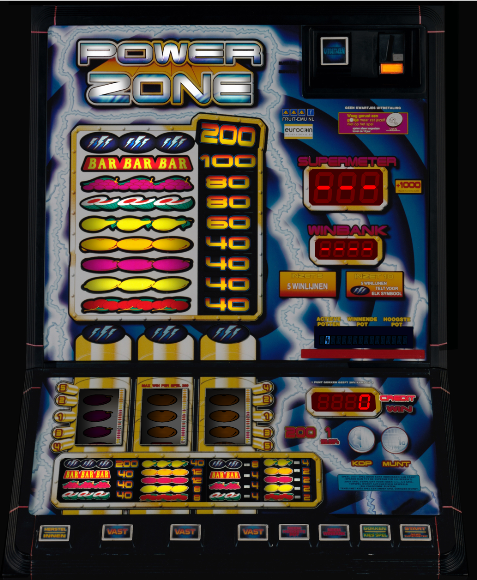 De Power Zone is een fruitautomaat van Eurocoin uit 1998. In het bovenspel kan gespeeld worden met inzet 5 of 10 credits. De machine werkt met 10 potten waarin punten worden verdeeld om overflow te voorkomen. Punten gaan automatisch naar de pot met de laagste waarde.