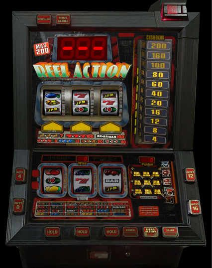 De Reel Action is een fruitautomaat van JPM uit 1990 en de opvolger van Reel Magic. De kast draait op MPS2-techniek en heeft 6 brede rollen: