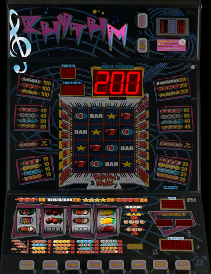 De Rhythm is een fruitautomaat van JPM uit 1993, gebaseerd op System 5-techniek. De kast staat bekend om zijn matrix-feature, waarbij de Rhythm Bonus zorgt voor een snelle vulling van de fruitmatrix. De originele manual is aanwezig.
