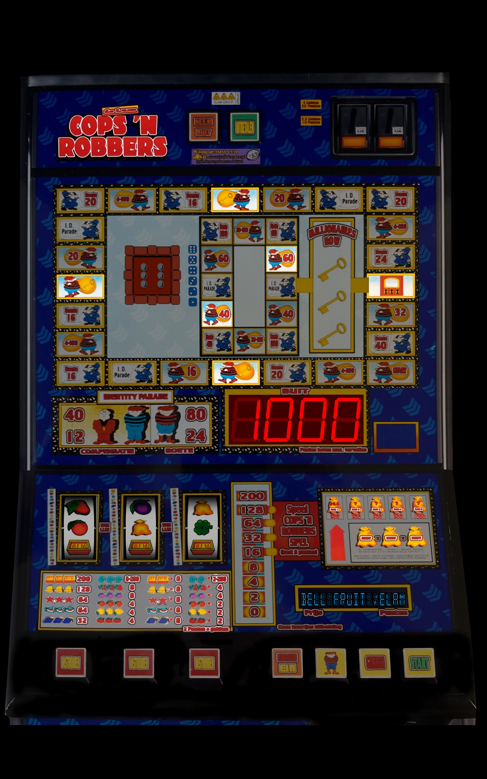 De Cops n Robbers Deluxe gokkast is een fruitmachine van bellfruit uit 1994. De Cops n Robbers was er al in 1985 in het 85 bfm kabinet. De gokkast Cops n Robbers Deluxe was de moderne variant maar wel met het bekende leuke spel tussen de boef en de agent. Cops ’n Robbers: Het spel bestaat uit een circuit met posities waarop punten te winnen of te verliezen zijn. Zolang er punten in de Clubmeter staan, kan het spel voortgezet worden. Zodra de Clubmeter op nul staat is het spel afgelopen. In het circuit zijn posities waarop sleutels te winnen…