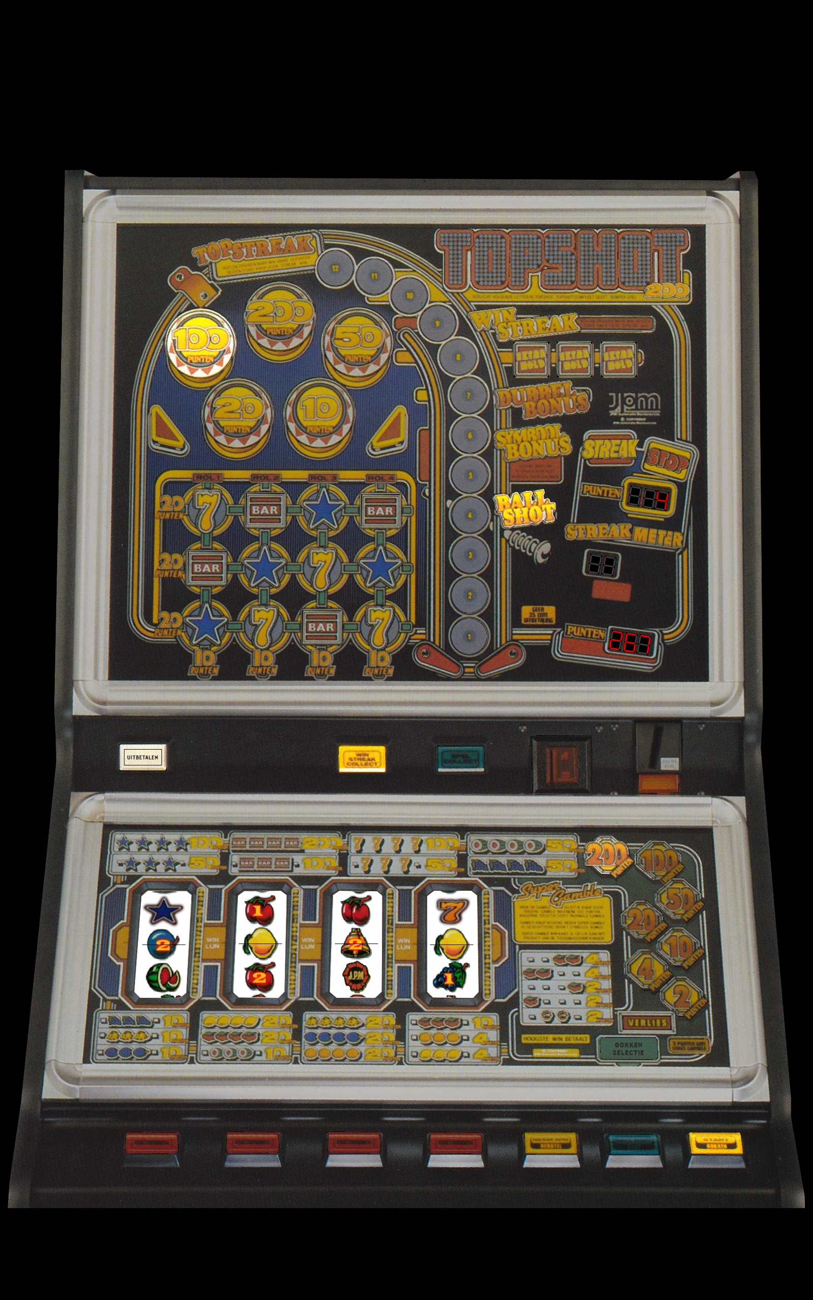 De Topshot is een fruitmachine van JPM uit 1986. Oorspronkelijk werkte de kast met bonuspunten, later vervangen door gewone credits. De gokkast heeft 4 rollen en meerdere spellen: het Basisspel, Symboolbonus, Pinballspel (met Streak- en Bumperspel), het Topshot-bonusspel en het Supergamble. In het Basisspel win je credits met symbolen op de middelste winlijn. Gewonnen prijzen kun je verhogen met Gamble en Supergamble (behalve bij 200 punten). Het Pinballspel start bij 4 of meer punten zonder winnende combinatie (of bij fout gokken) en activeert functies zoals: Symboolbonus (bonuslijnen met punten), Double Bonus (verdubbeling van prijzen), Extrahold (extra holds sparen), Winstreak /…
